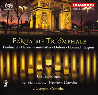 | DO NOT MISS!!! This is arguably the best recording of a huge pipe organ with a symphony orchestra. Yes, it is inside the acoustics of Liverpool Cathedral, but if your surround balances are set properly and you have full-range monitors all around (with LOTS of power), this disc will move the air around in your home. Also, it will replace the acoustics in your listening room with those of Liverpool Cathedral. While the music cannot be called top-drawer (with the exception of the Dupré piece which is one of the loveliest things he ever composed), the performances certainly are. The best thing is that most of these works are very charming and powerful "pieces d'occasion" designed to make the hair stand up on the back of the necks of listeners in a huge space with a powerful organ and the added orchestra; all written for special celebratory events. Berlioz used to say that the orchestra was the "the king of instruments" and the organ was "the pope." When combining the two, the organ usually comes out the dominant force simply because it is capable, with a serious pedal division, of moving huge amounts of air, which a symphony orchestra, for all of its brilliance, cannot ever do (except when there is a madman playing the bass drum). The disc contains the best recording ever done of Marcel Dupre's Cortege et Litanie. It was written for a premiere with the Philadelphia Orchestra under Stokowski at the Wanamaker Organ at the Lord and Taylor Store in Philadelphia. This cut is worth the price of the disc, alone. I have loved this lovely miniature ever since I first learned to play it, decades ago. Sometimes, there are SACD's that sound good when one is in the room with them, but this one is quite special, as it just drifts about the house in a very lovely manner. You will not be sorry you invested in this sonic spectacular. Do bolt down any small objects as this disc will make lots of loose things buzz in your home. DO NOT MISS!!! | |